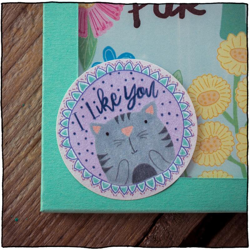 (1 Deckblatt + 12 Gutscheine) - Minzefarbene Aufbewahrungsbox mit 4 cm großen, rundem „I like you“ Sticker